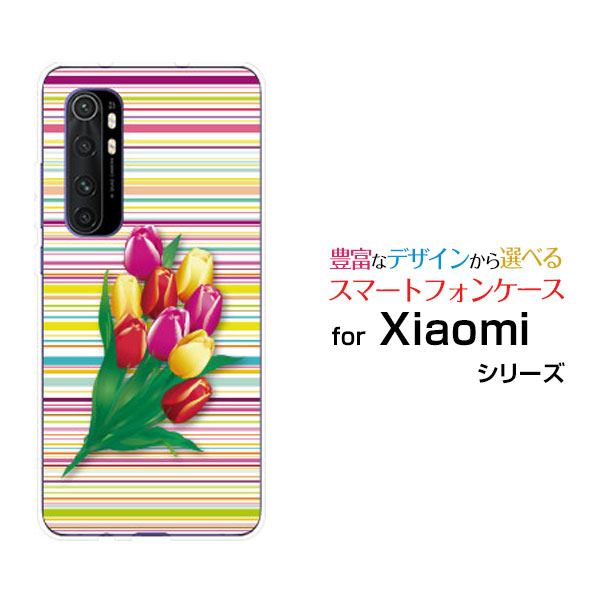 Mi Note 10 Lite ミー ノート テン ライトOCN モバイルONEチューリップとボーダー[ スマホカバー 携帯ケース 人気 定番 ]